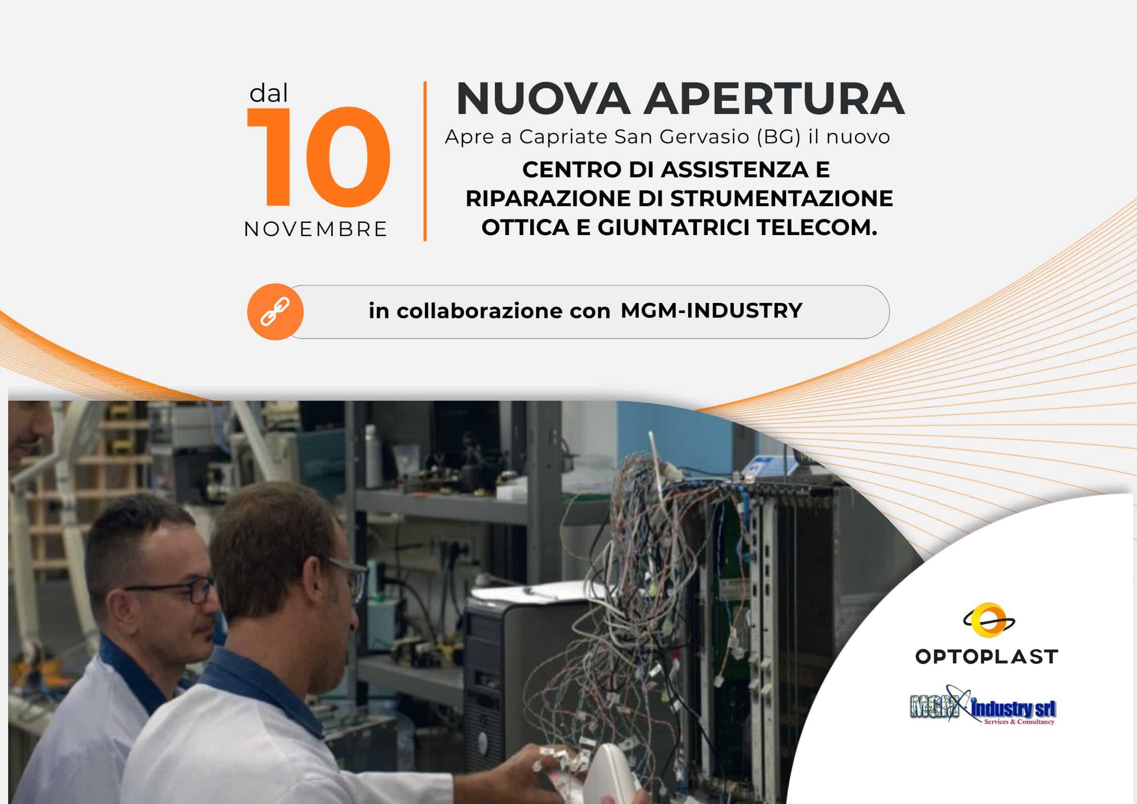 Optoplast annuncia l’apertura del nuovo Centro di Assistenza e Riparazione di Strumentazione Ottica e Giuntatrici Telecom a Capriate San Gervasio (BG), Via dell’Artigianato 59, operativo dal 10 novembre 2025.
